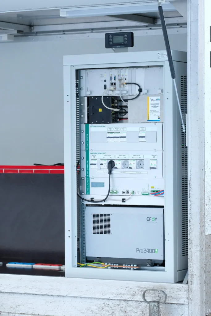 Als Backup kann die Mobile Basisstation mit einem ebenfalls zur Gesamteinheit gehörenden Notstromaggregat betrieben werden.
