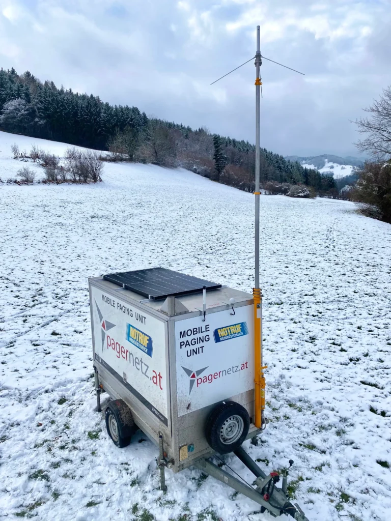 Die von uns geplanten und aufgebauten Mobile Paging Units (MPU) sind voll funktionsfähige mobile Senderstandorte zur Versorgung eines Gebietes mit dem digitalen Pagernetz.